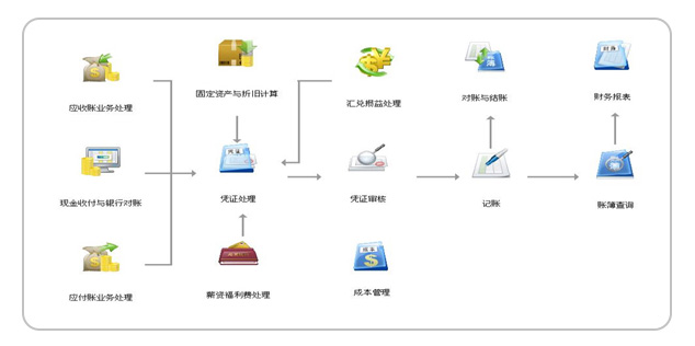 - 支持企業(yè)中不同角色人員輕松實(shí)現(xiàn)從業(yè)務(wù)處理到財(cái)務(wù)核算,再到多維度的報(bào)表分析的全過程管理